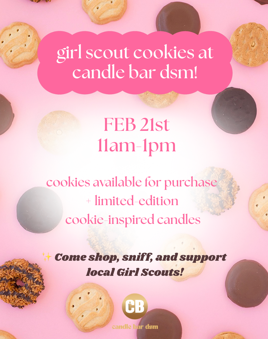 Join us for girl scout cookies + girl scout themed candles!