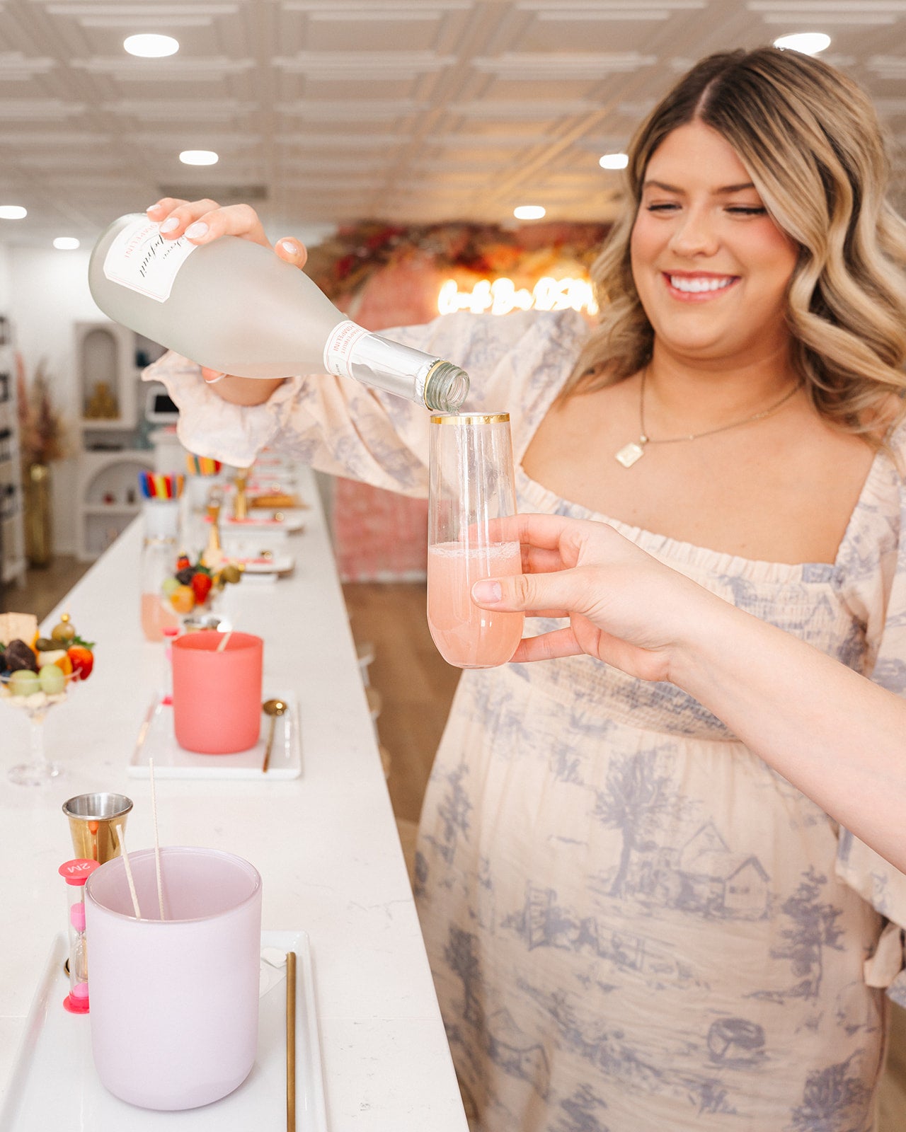 Bring your own food or beverage in! We allow coffee, mimosas, treats of all kinds! If you need your wine/beverage chilled ahead of time we do provide a wine cooler for you prior to your party! We also have a 6' + 4' folding table for use (you must provide your own tablecloths) and a soon to be 8' countertop space!