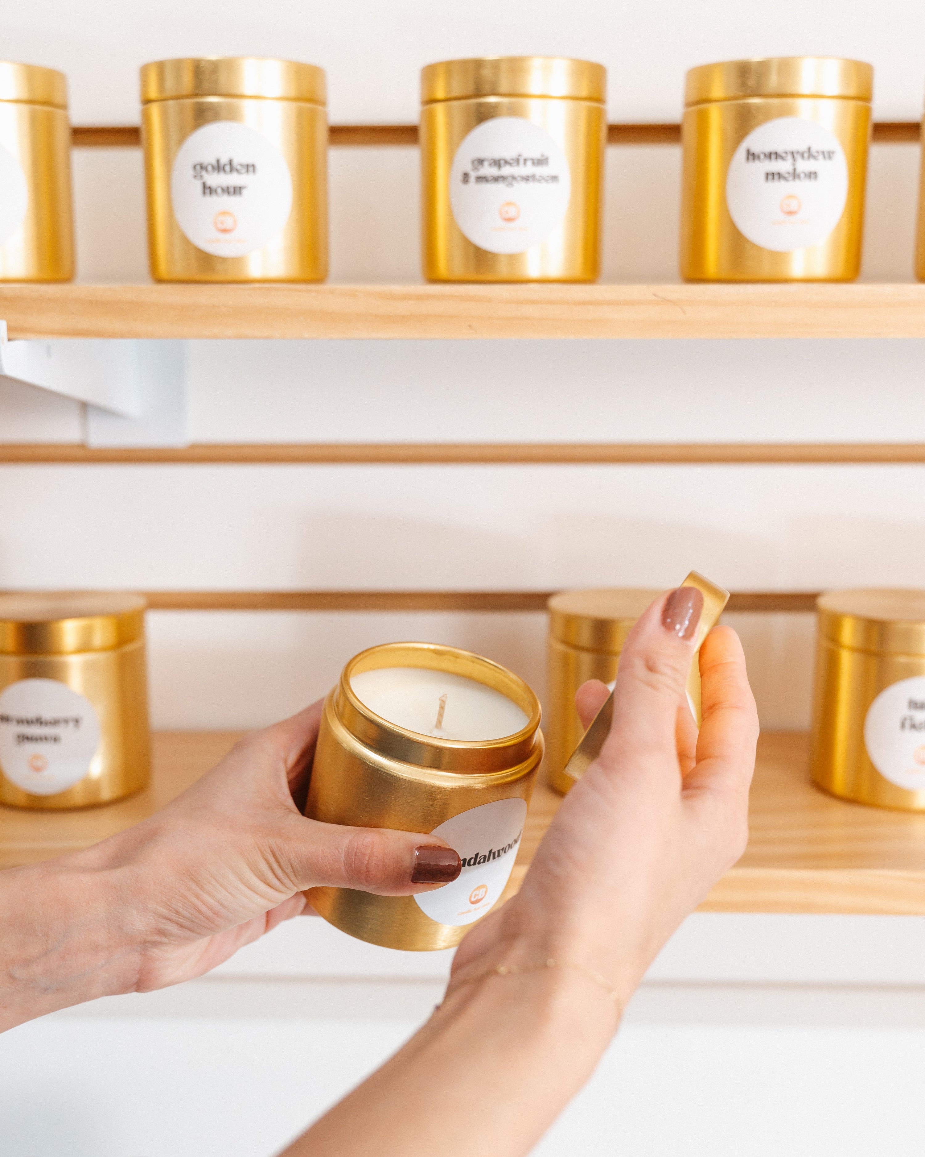 From private label candles for retail shops and corporate gifting to wedding favors, client thank-you gifts, and special events — each candle is thoughtfully crafted using 100% soy wax, premium fragrance oils, and fully customizable labels.